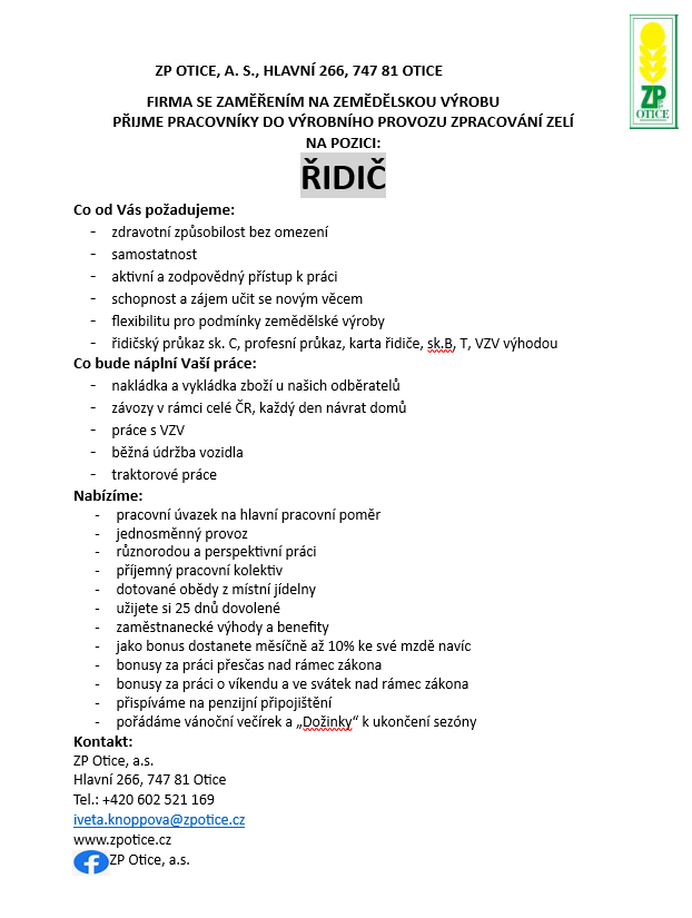 ZP Otice a.s., Hlavní 266, 747 81 Otice